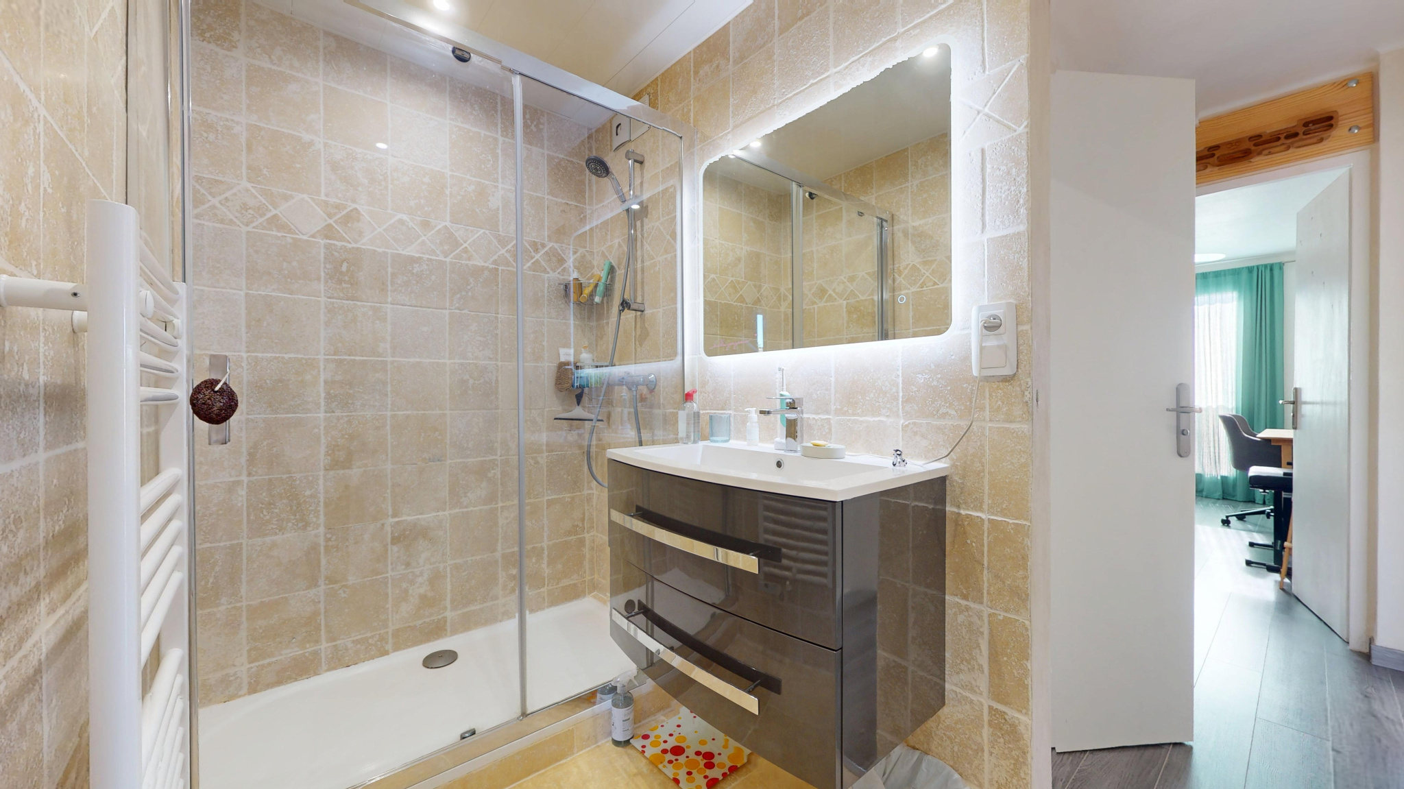 L’espace nuit se compose de 2 chambres de 10 m2 et 11 m2 dotées de placards dont cette dernière donnant sur un balcon, d’une salle de douche et d’un WC indépendant.