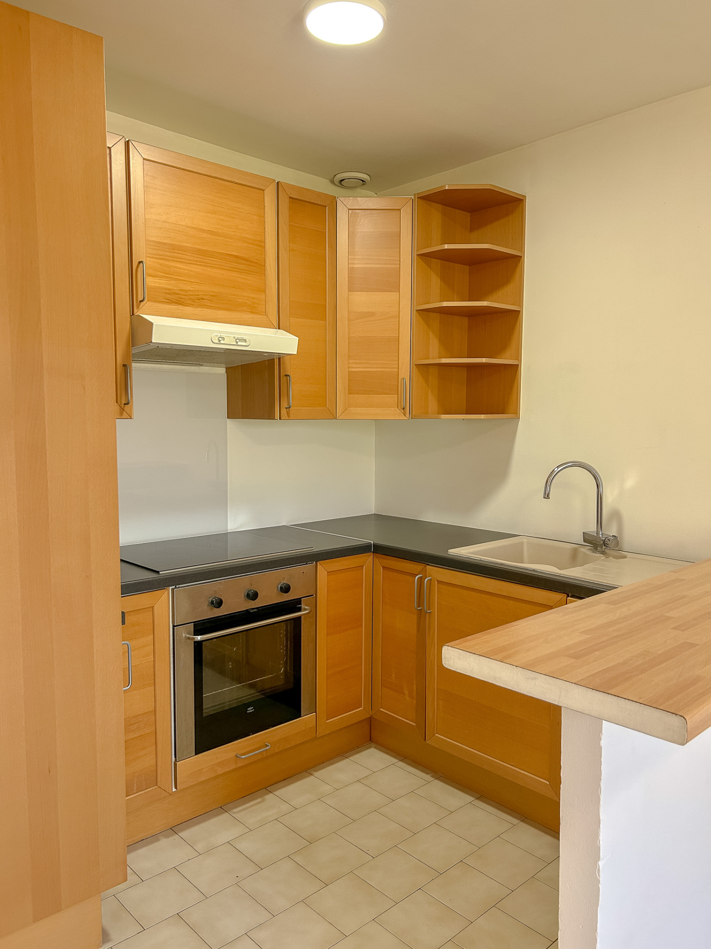 Cet appartement de type 3 se compose d’une entrée, une large pièce de vie lumineuse avec cuisine ouverte équipée d’environ 26 m2 exposées à l’Ouest.