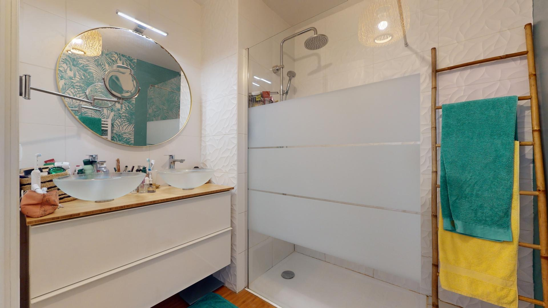 L’appartement se compose d’une entrée avec placard, d’un WC indépendant, d’une salle de douche, de 2 chambres de 10 m2 et 12 m2 donnant sur la terrasse.