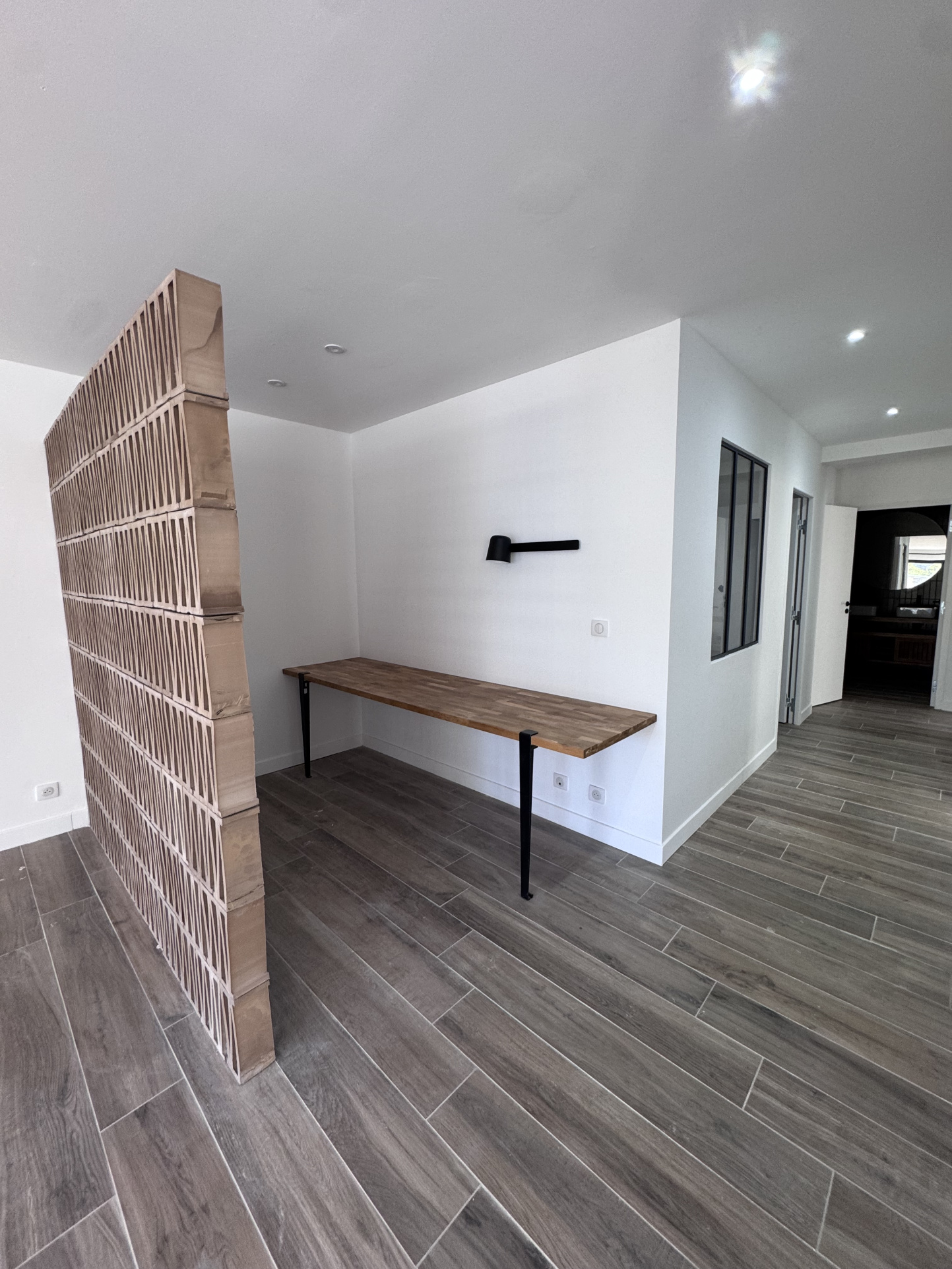 Cette maison lumineuse se compose d’un séjour spacieux et lumineux avec espace de rangement donnant sur terrasse, jardin et piscine, une cuisine ouverte sur le séjour aménagée et équipée de plaques de cuisson vitrocéramiques, hotte, four, réfrigérateur combiné, lave-linge, lave-vaisselle et vaisselle, un coin bureau, un couloir accédant au côté nuit, 3 chambres séparées avec rangements dont 2 avec coin bureau et 1 donnant sur une autre terrasse, une salle de bains avec baignoire, douche à l’italienne, meuble double vasque et wc séparés.
