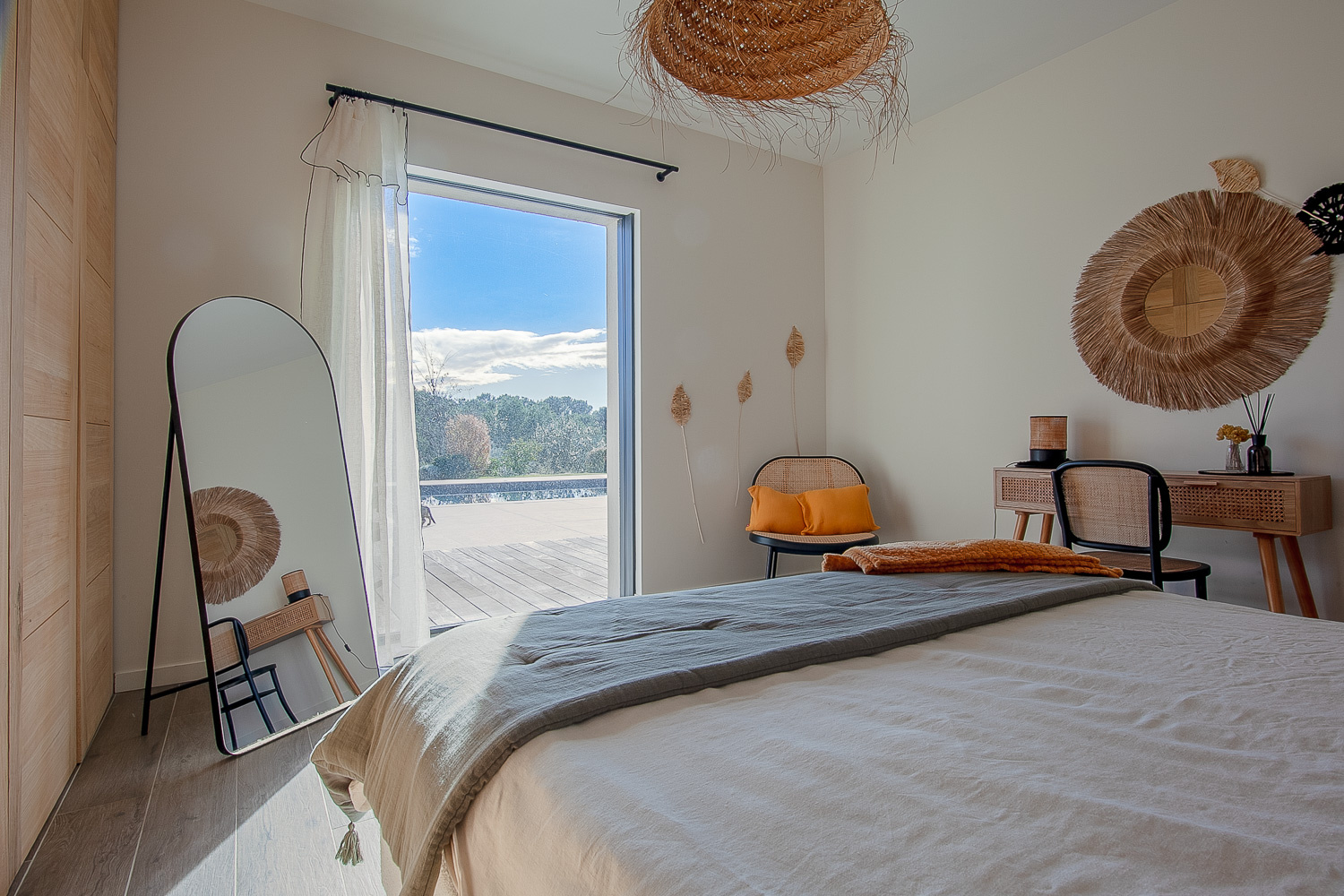 La villa comprend quatre chambres spacieuses dont 1 en suite parentale de 40m2 avec son dressing et sa salle de bain.
