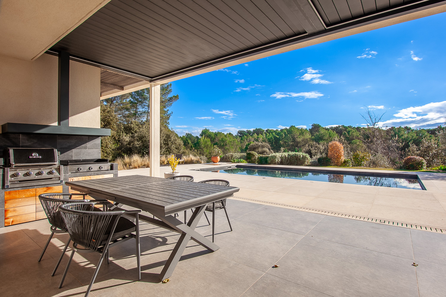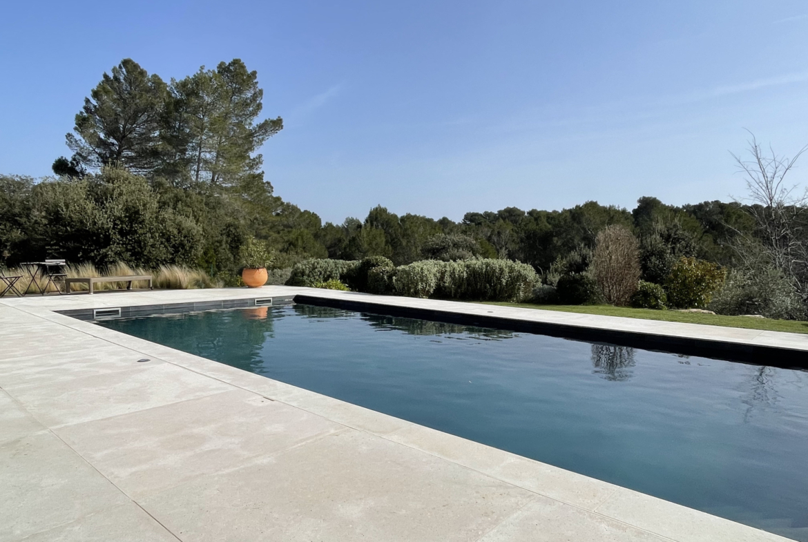 Designed to make the most of outdoor living, the property includes a 120 m2 terrace, a tiled 10 x 4 metre saltwater pool, a pétanque court, and a summer kitchen–all in absolute tranquillity.