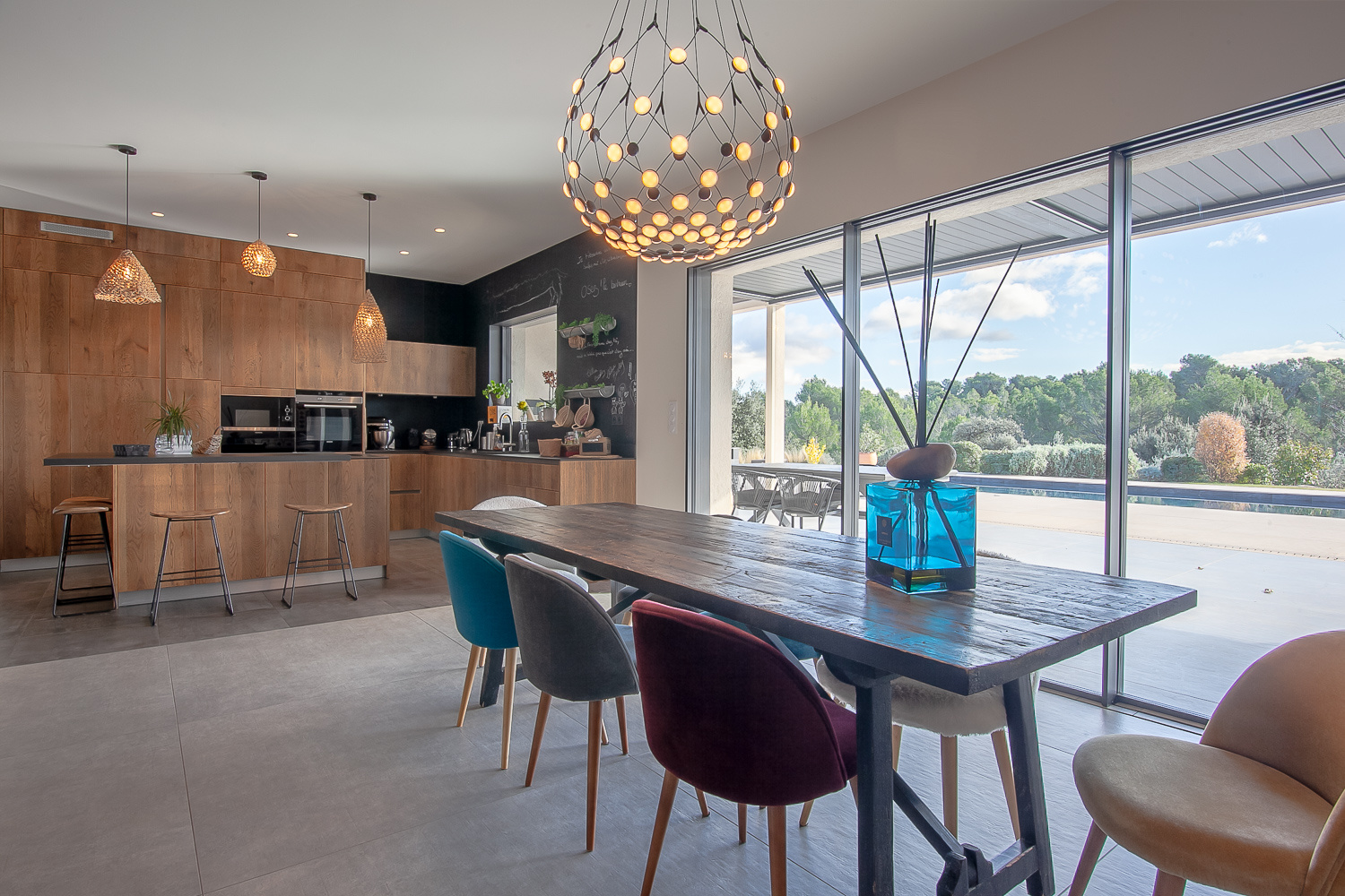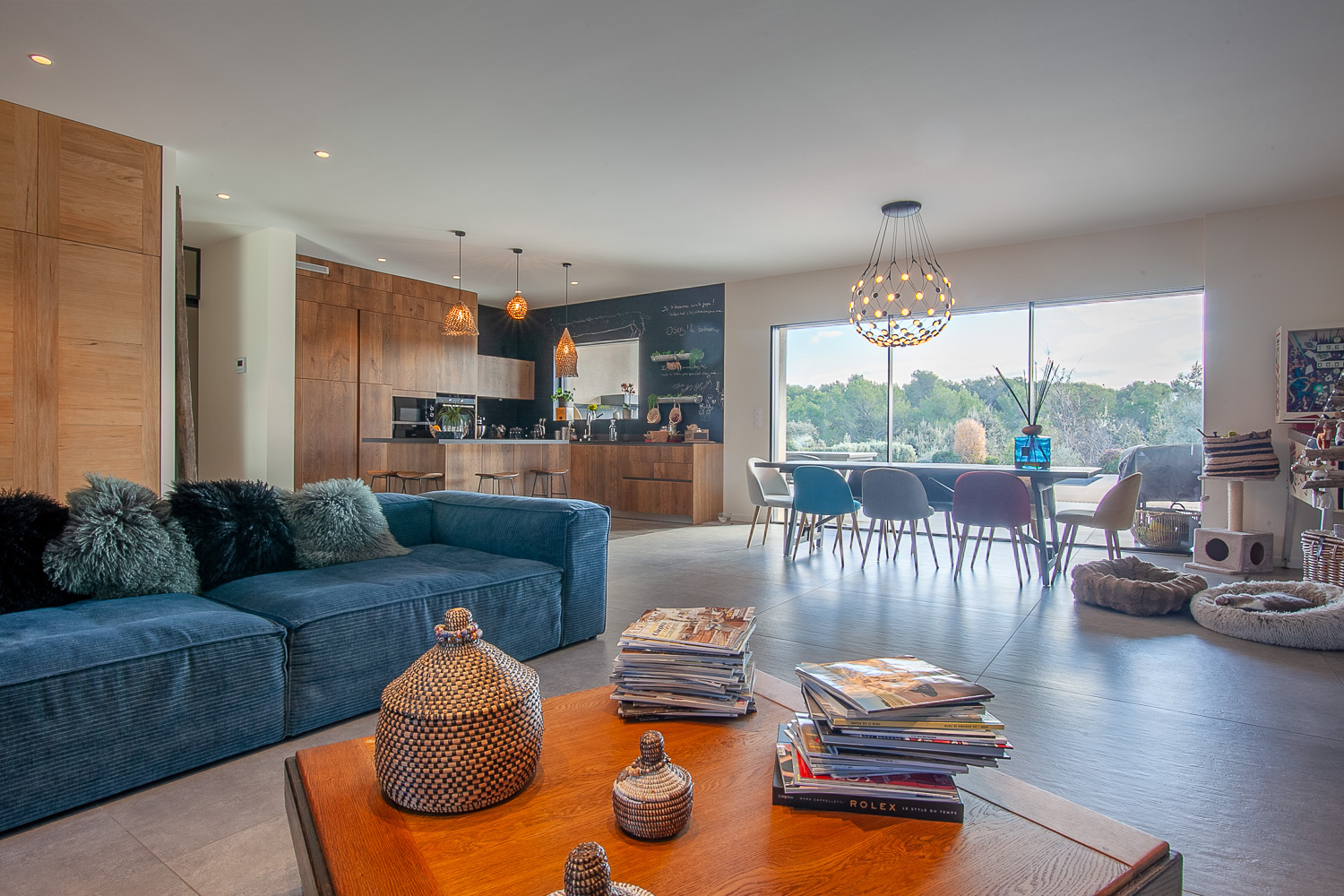 Les vastes espaces ouverts de la maison et les grandes baies vitrées invitent à une immersion totale dans ce paysage d’exception.