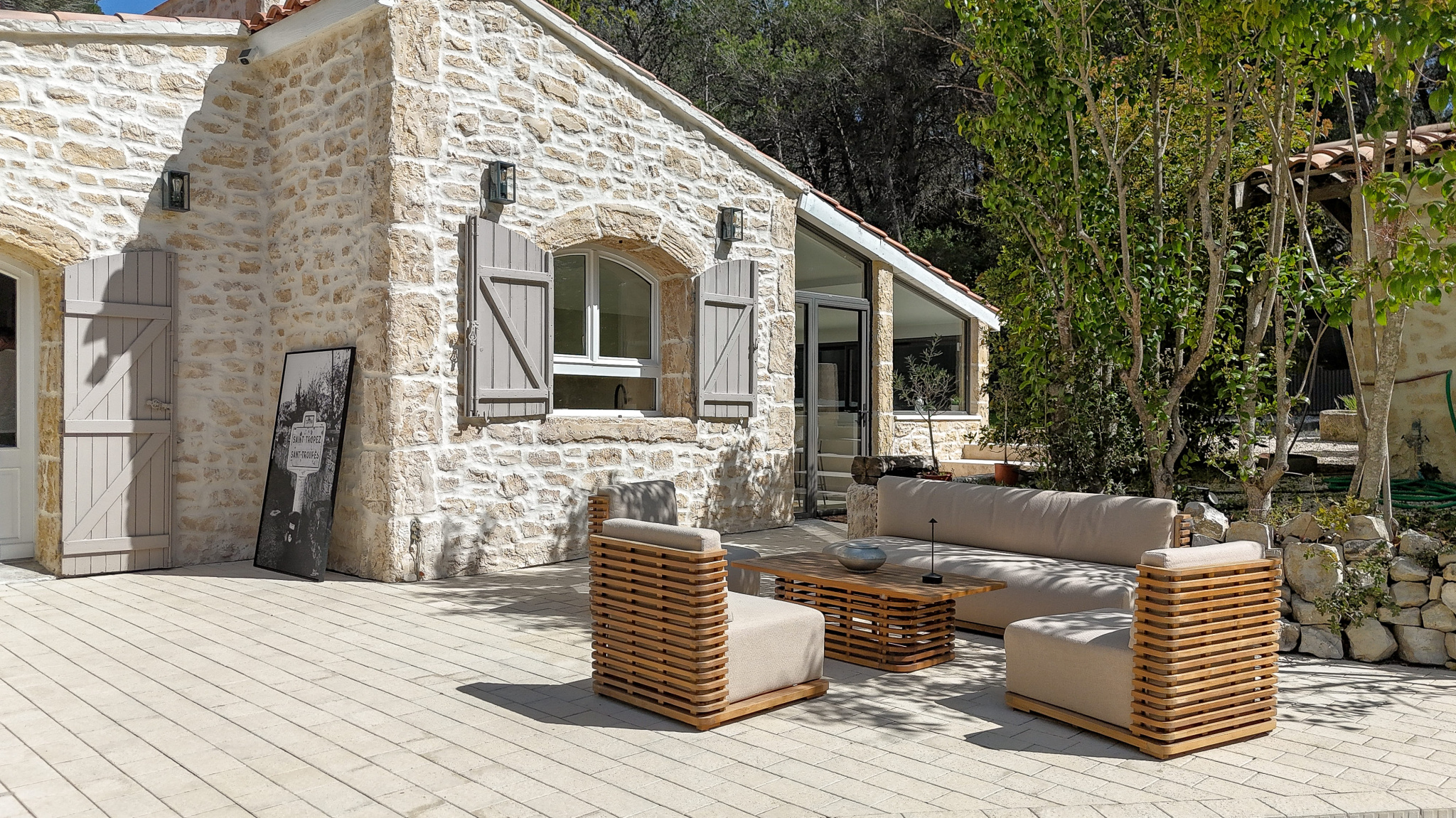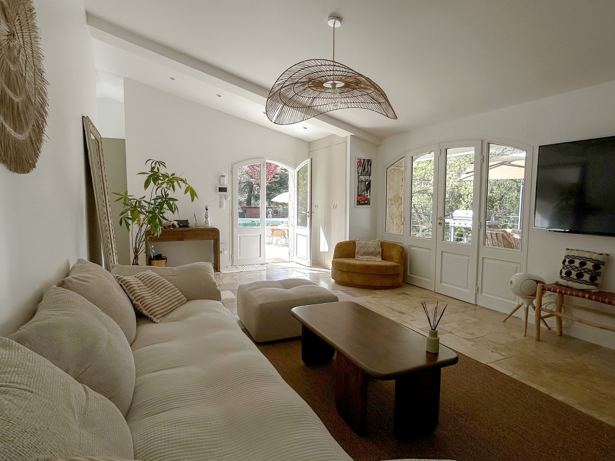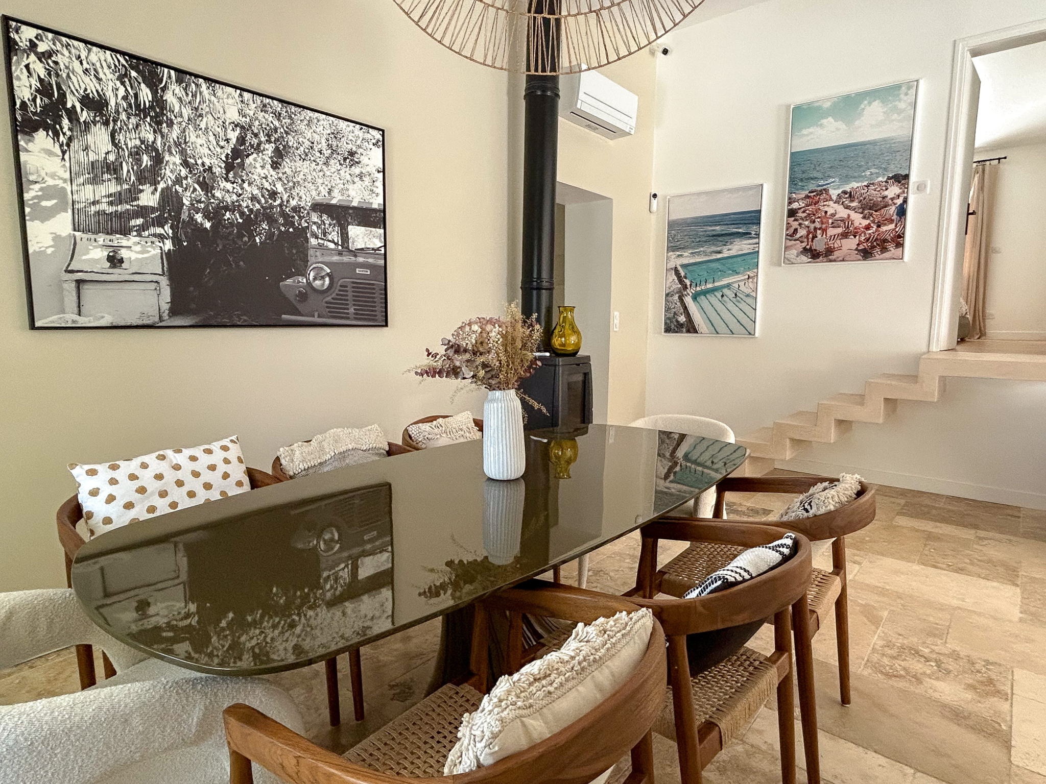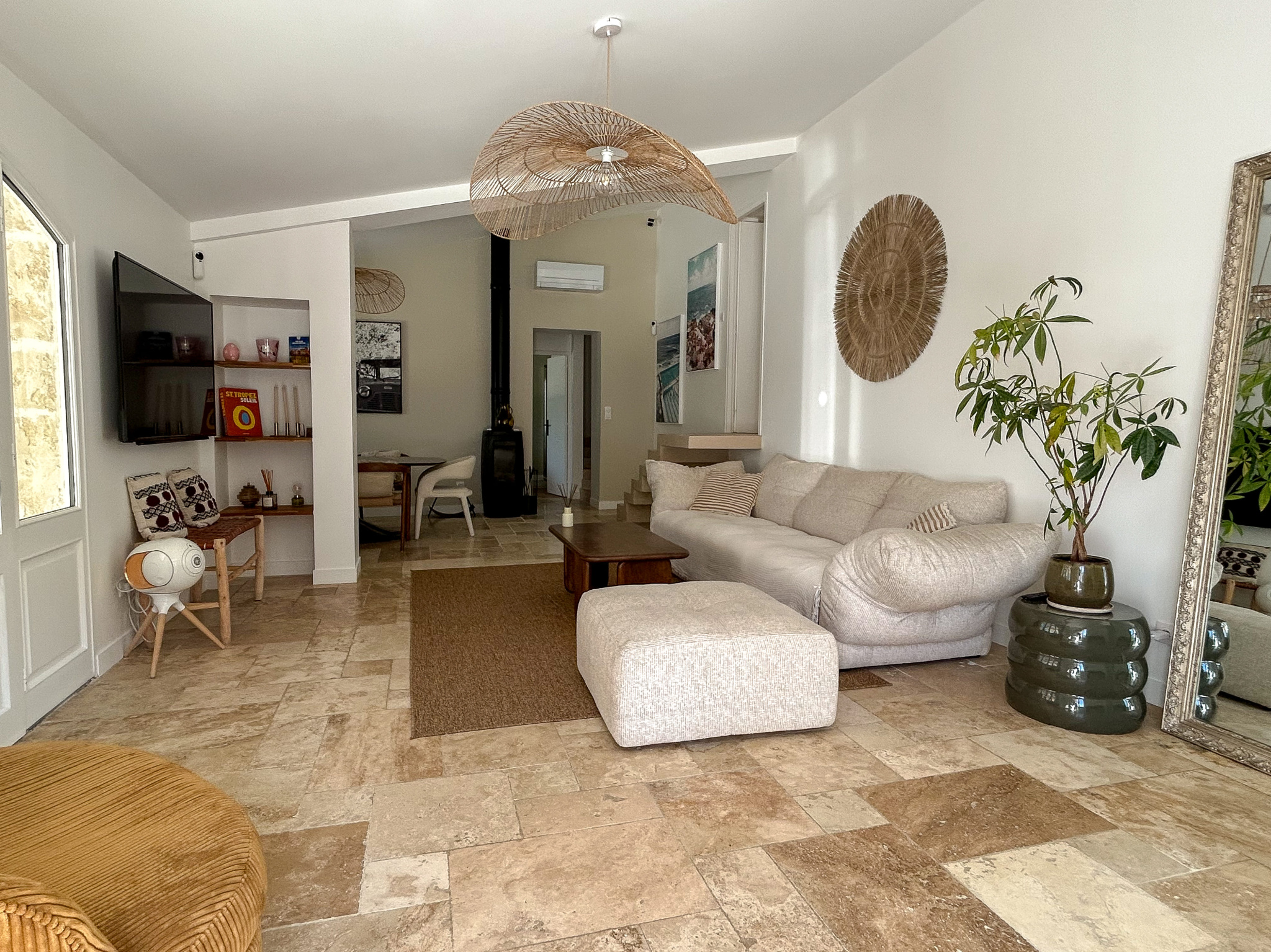 La maison principale, entièrement repensée avec goût propose une belle pièce de vie lumineuse avec pôle à bois, ouverte sur l’extérieur.Un Sol en travertin apportant élégance et chaleur. Une cuisine moderne, aménagée et entièrement équipée.Un espace nuit composé de 2 chambres d’environ 13 m2 dotée chacune de leur douche privative, WC indépendant et d’une suite parentale avec dressing, salle de bain ( douche et baignoire ) et WC indépéndant.